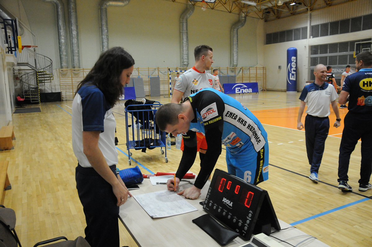 Znacznie gorzej zaczęliśmy drugą partię. Nie skończyliśmy trzech pierwszych ataków i było 2:4. Szybko jednak złapaliśmy kontakt. Goście zepsuli dwie zagrywki, zaatakowali w out, a my ładnie wykorzystaliśmy zamieszanie po ich stronie i było 6:6. Walka punkt za punkt trwała do stanu 12:12. W tym momencie Kędra zakończył bardzo długą wymianę, chwilę potem Jesień dołożył atak ze środka, a Obremski sprytnie obił blok gości i urwaliśmy się na trzy punkty. W drugiej odsłonie ewidentnie błysnął Bartosz Jesień, który kilkukrotnie w ładnym stylu punktował ze środka. Goście próbowali jeszcze złapać kontakt, ale ich zapał ostudziły trudne zagrywki Michała Korycińskiego. Odrzuceni od siatki, nie kończyli akcji, a KKS wygrał tę partię do 22.